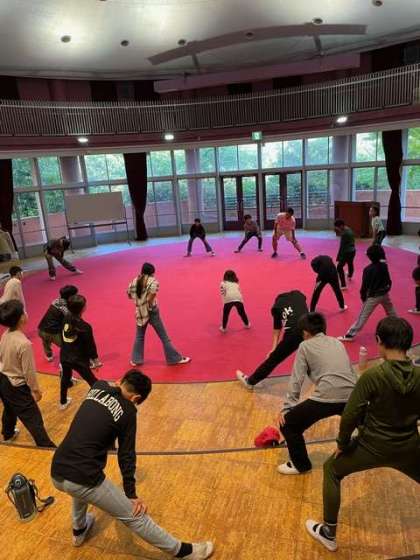 2日目が始まりました。体操をして目を覚まし、この後のスケジュールを確認して活動開始です。