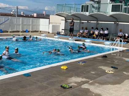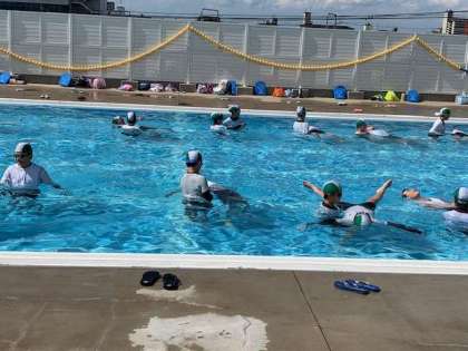 6年生は、体操服を着て泳ぐ体験「着衣泳」を行いました。