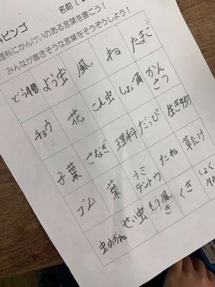 1学期に習ったことを思い出して、理科「ビンゴ」をしていました。