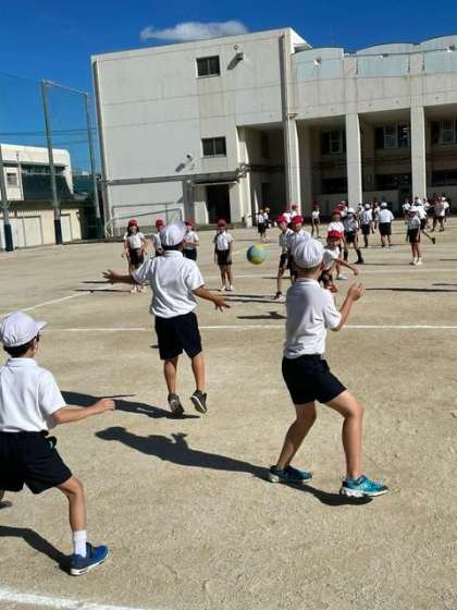 昨日に続いて、今朝は3・4年生がドッジボールの交流試合をしました。中学年になると、速いスピードでボールを投げる児童もいて、見ていて楽しかったです。