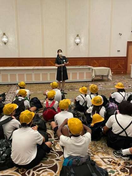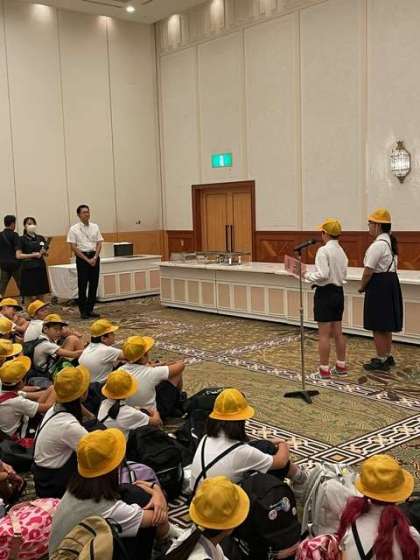 ペットボトルの水を2本もらって、退所式を終えました。これから「海ほおずき」に向かいます。