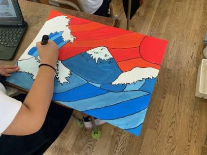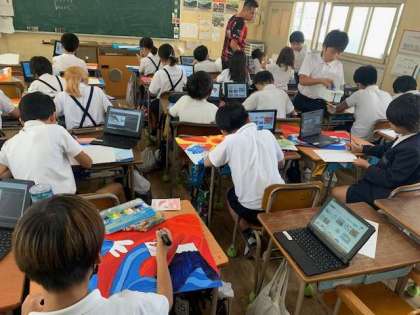 運動会で、ソーラン節を踊ります。その学習とも連携して、図工で大漁旗をタブレットで調べて、描いています。