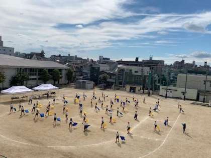 風も気持ちよく感じるようになりました。運動場では、運動会の団体演技のフラッグを練習しています。