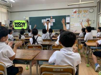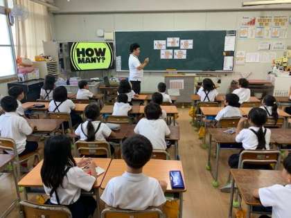 いろいろな方法で、英語を何回も言ってもらおうとC-NETの先生の学習に子どもたちもとっても楽しそうです。