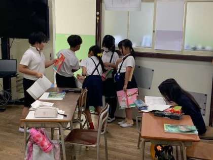 みんなで意見を考えたり、意味調べをしたり、楽しく学習を進めています。