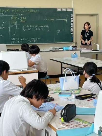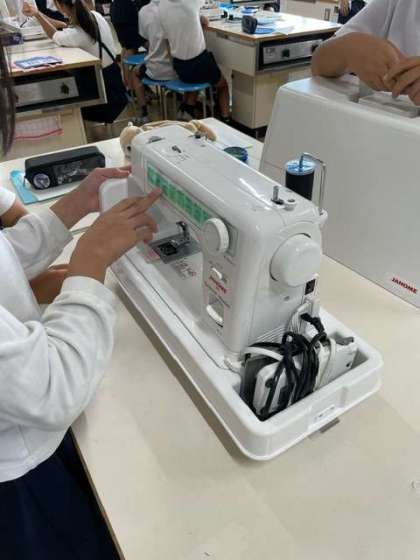 ミシンぬいのよさについて、実物を見ながら学習しました。