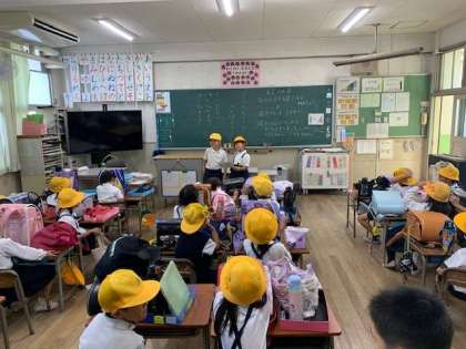 1年生の終わりの会に出ました。4月に入学した子どもたちも半年も経つと担任の先生がいなくても、ちゃんと自分たちで終わりの会を運営・進行していきます。