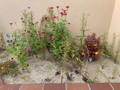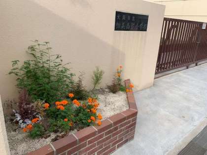 南門の両脇にある「PTAふれあい花壇」ハロウィン仕様になっているのに気がつきました。
