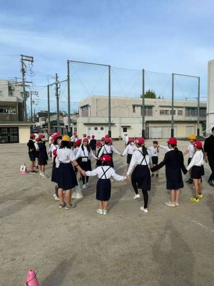 今朝は、集会委員会による朝の児童集会が行われました。先月に行われた運動会に関する3択クイズを、たてわり班で協力しながら考えました。