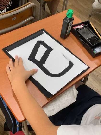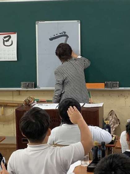 今回は、その書道教室の方々にご協力いただき、5年生に来年のカレンダーを作成してみました。まずは基本的な書き方を習って、その文字を崩していきます。