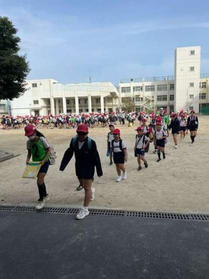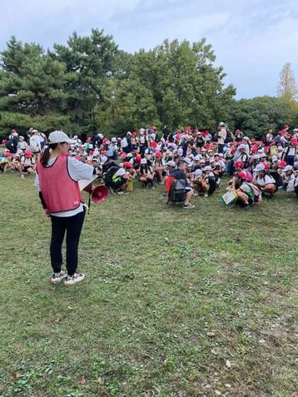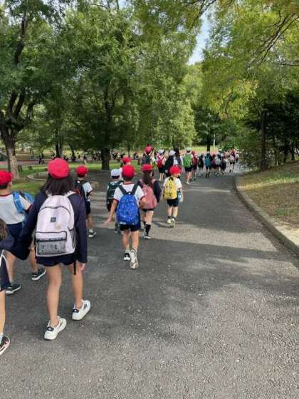 学校で開会式をしてから久宝寺緑地公園に向かい、先ほど到着しました。