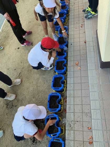 「大きく育って」って声をかけながら水をあげる姿は、とてもほほえましいです。