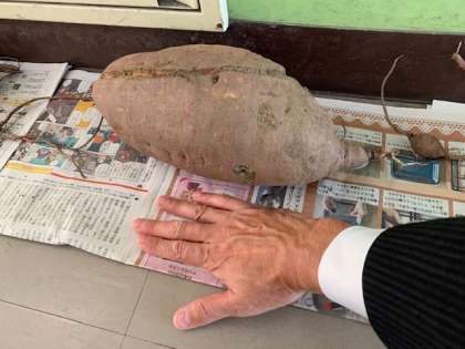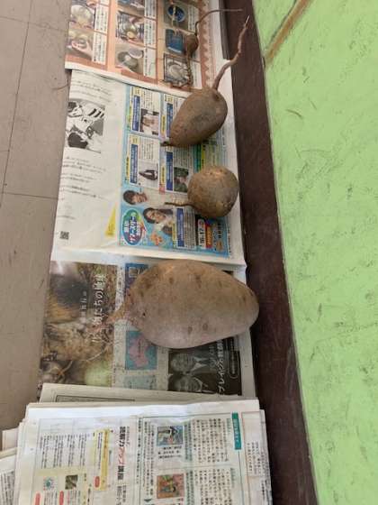 昨日掘ったさつまいもの中に、とってもとっても大きなさつまいもを見つけました。