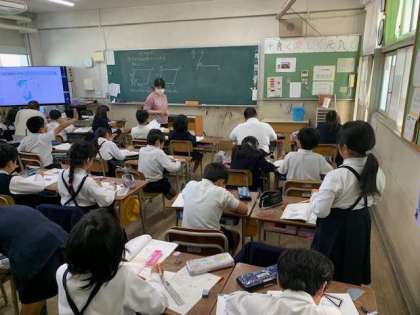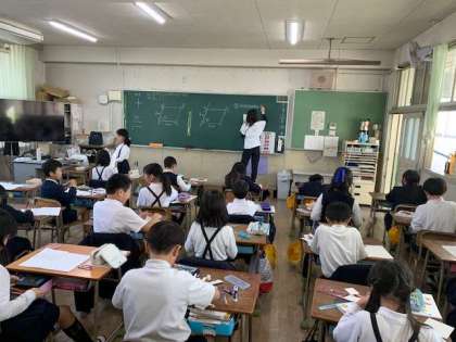 子どもたちは普段、コンパスを使う機会が少ないようで、上手く回せる子は少数です。