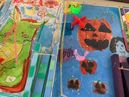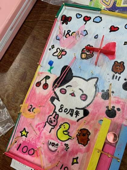 釘打ちトントンとピンボールゲームを作成しています。子どもたち、それぞれ個性的なデザインがたくさんできてきています。