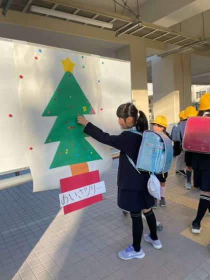今週は「あいさつ週間」です。運営委員の児童が朝の正門に立って、元気のよいあいさつを行った人に学年カラーのシールをわたします。もらった児童は「あいさつツリー」にシールを貼っていきます。どんなツリーができあがるか楽しみです。