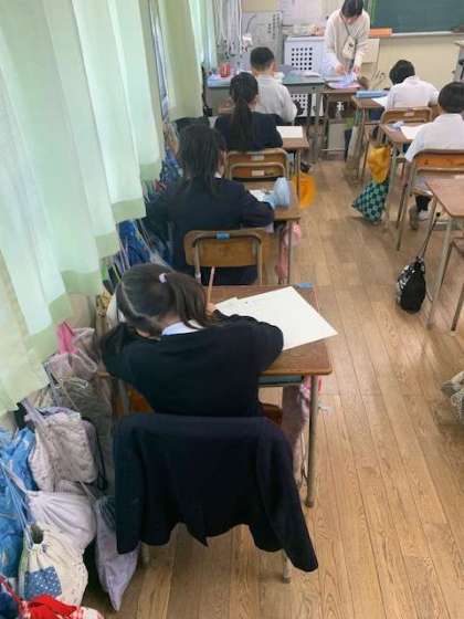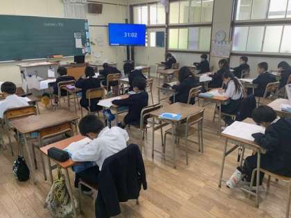 今日は2日目です。算数、理科、5、6年生は英語に取り組んでいます。
