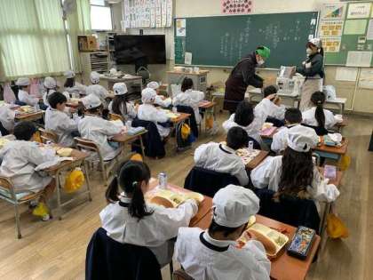 今日はスウィートポテトが初めて出ました。1年生の子どもたちも「おいしい」と感想を言ってくれています。よかったです。