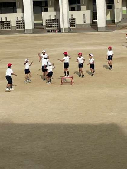 子どもたちの歓声が運動場から聞こえてきました。引き寄せられるように見てみると、2年生が冬空の下で元気に「ポートボール」をしてしました。