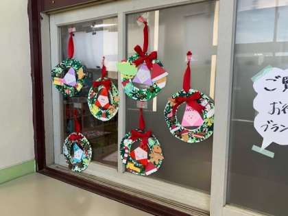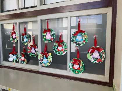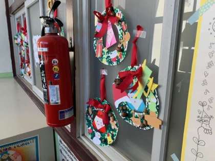 図画工作科で作ったクリスマスリースが、完成しました。