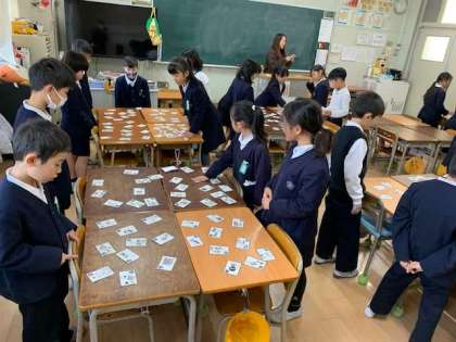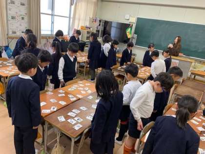 カルタに取り組んでいました。みんな一枚を取るのに必死です。
