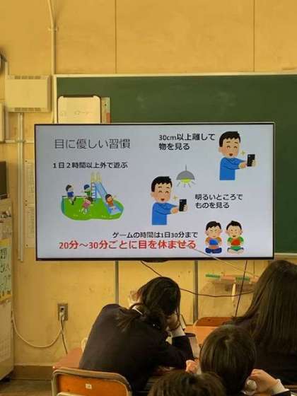 学校眼科医の先生に来ていただき、目の学習をしました。
