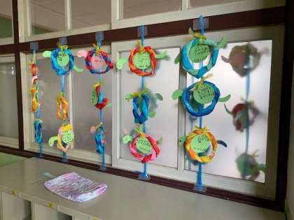 一年生の教室には、今年の抱負を書いた掲示がされています。