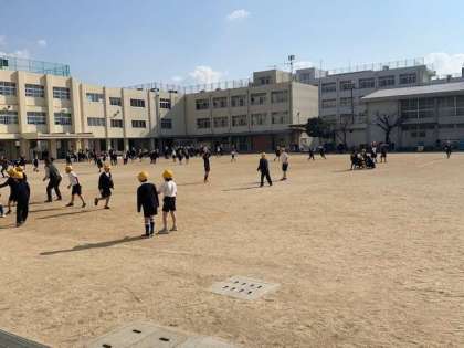 運動場は、いい天気だということもあり、多くの子どもたちで賑わっています。