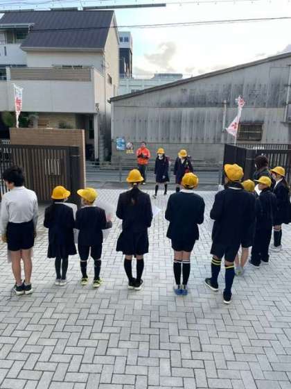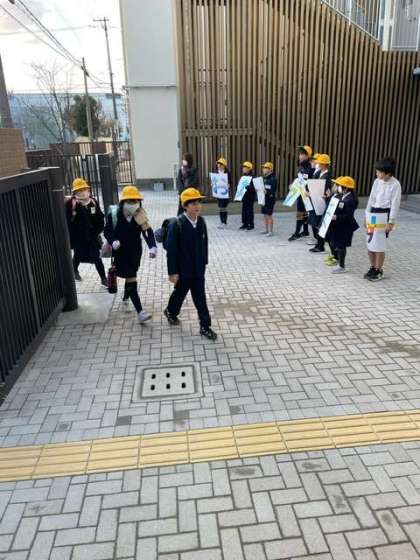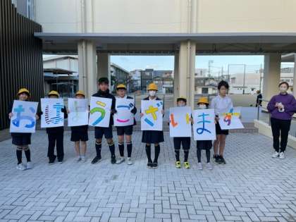 児童会運営委員や各クラスの「あいさつリーダー」が正門で元気よく挨拶を行っています。