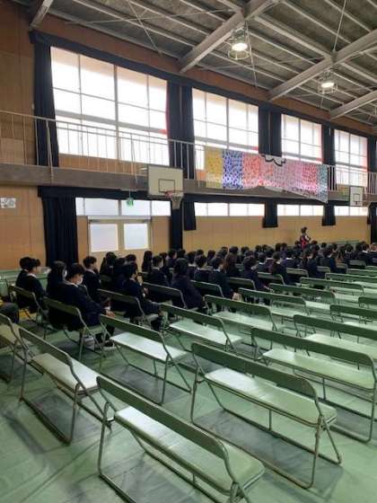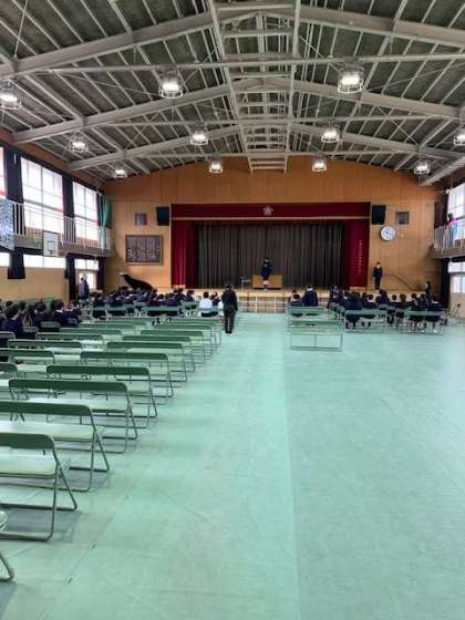 5年生も交えて、卒業式の練習に取り組んでいます。