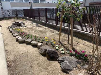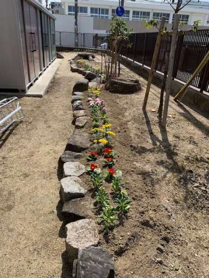 言葉を発しない植物をも大切にする子どもたちに育ってほしい。との願いを込めて花を整備しました。