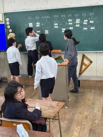 係活動の話し合い、ロッカーや靴箱の分担、高学年は委員会活動の話し合いなど、学期始まりの話し合いを行う学級がたくさん見られました。