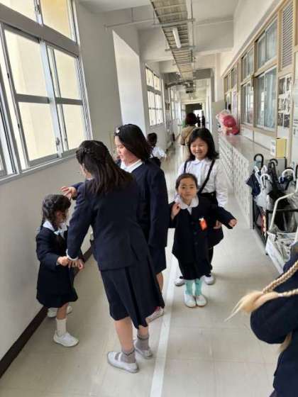 1年生がかわいらしいので、思わず声をかけて一緒に楽しく過ごしていました。