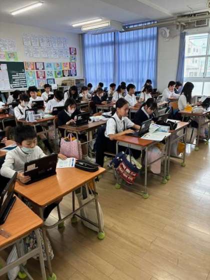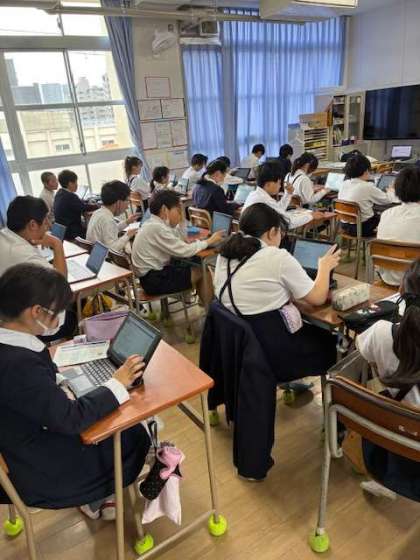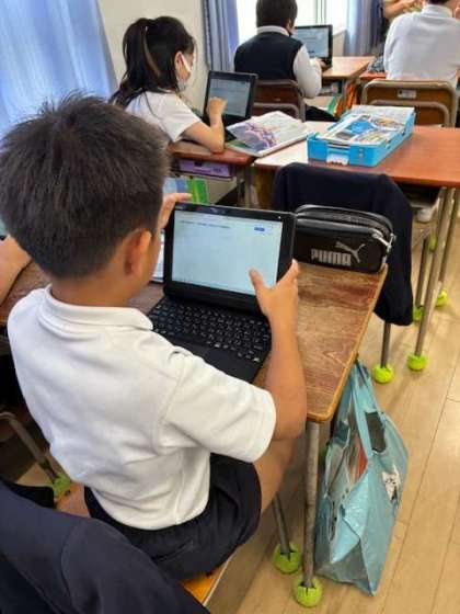 全国学力・学習状況調査の質問調査を、端末を使用して行いました。子どもたちも慣れた様子で質問に答えていました。