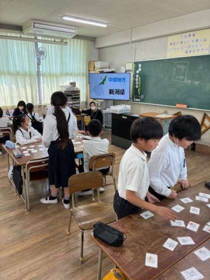 カルタ遊びを通して、日本の都道府県の名前と位置を覚えています。