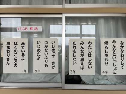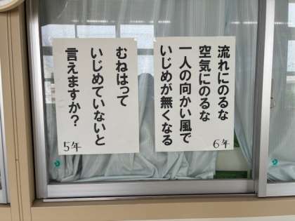 今朝の児童朝会では学校長の講話があり、各学級でも「いじめ」について考える時間を設けています。合わせて近日中に「いじめアンケート」も実施します。