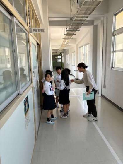 学校のいろいろな場所を、2年生が1年生を案内して回りました。どんな場所か下級生に説明する姿から、2年生の成長を感じました。