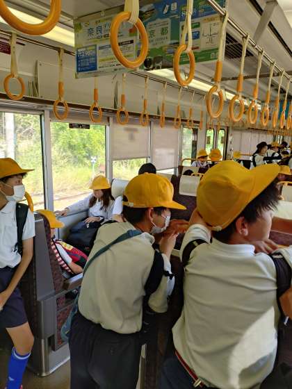 電車内です。もう少しで久宝寺駅です。