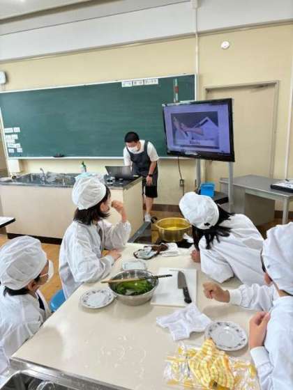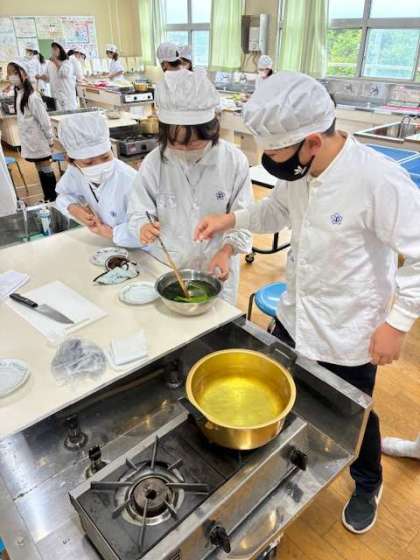 調理実習で小松菜のお浸しを調理しました。