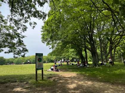 お弁当、おやつを食べ終え、広い芝生で自由に遊んでいます。