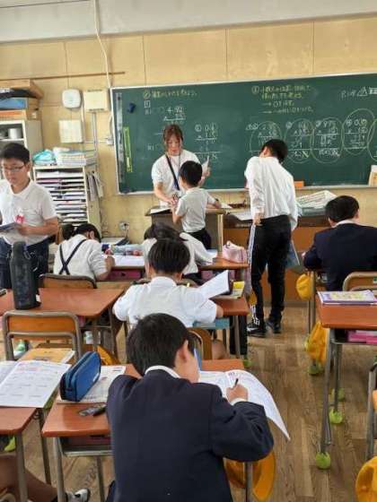 2学級を3分割して習熟度別少人数指導を行うことによって、個に応じた指導、達成感のある授業をめざしています。