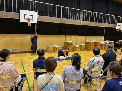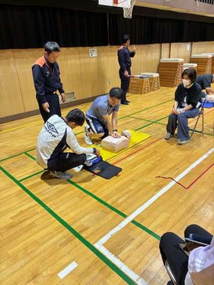 16日から始まるプール水泳を控え、本日の放課後に教職員対象の救急救命講習会を実施しました。平野消防署の救急隊の方を招き、年に一回、一次救命処置の手順を学習しています。