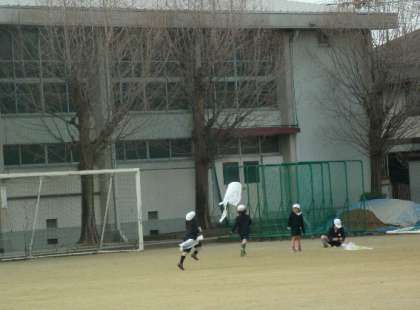 1年生は、3学期に図工科の授業で、たこ(凧)をつくりました。できあがったたこで、運動場でたこ揚げをしました。たこを揚げるのは、初めていう子どももいました。最初はうまくあがらなかったのですが、慣れるにつれて、高く揚げることができました。