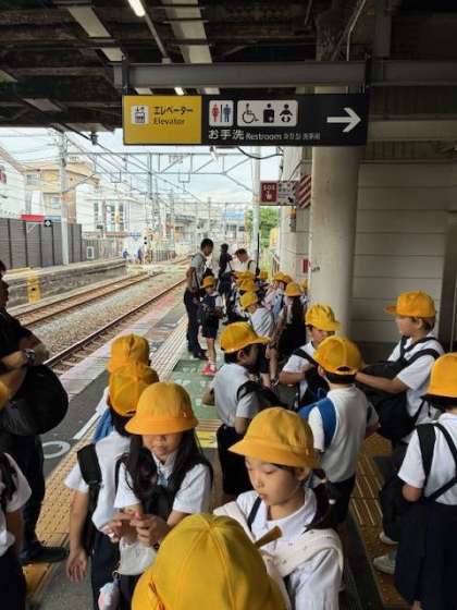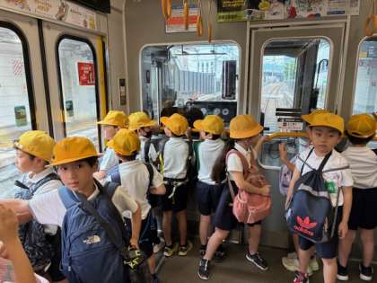 今日は3年生が遠足で「あべのハルカス」見学、環状線と大阪東線の周遊に出かけます。