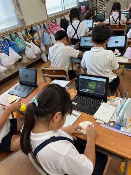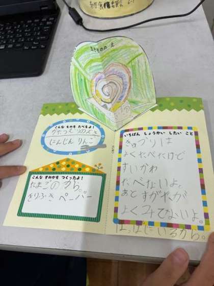 自分たちで飼育しているザリガニやカタツムリの生態について調べ、紹介できるように素敵な立体カードを作りました。