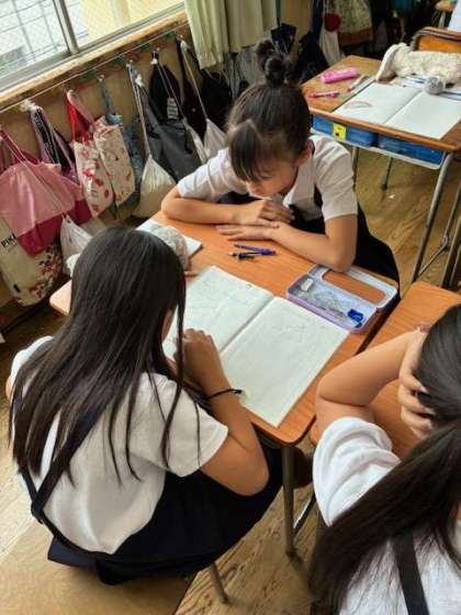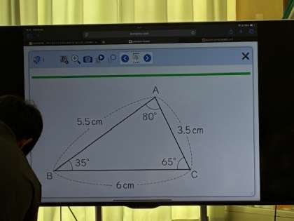 定規や分度器、コンパスなどを使用して、いろいろなやり方でノートに合同な三角形を作図しました。