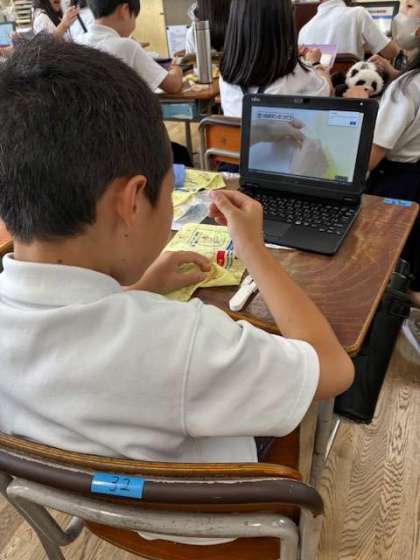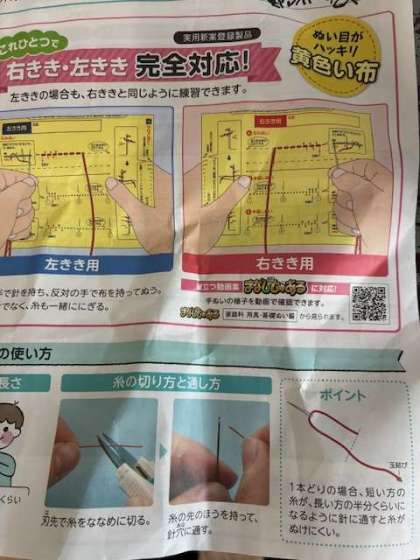 裁縫の練習を動画を見ながら行いました。