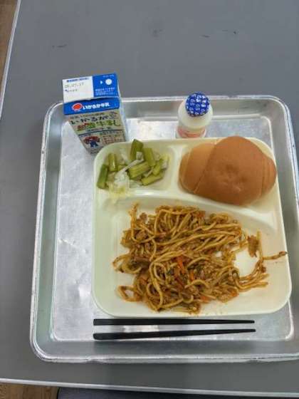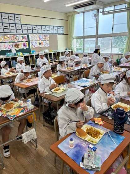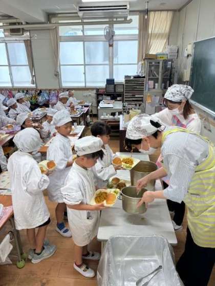本日のメインメニューは、子どもたちの大好きな「カレースパゲッティ」です。増量を希望する子がたくさんいました。