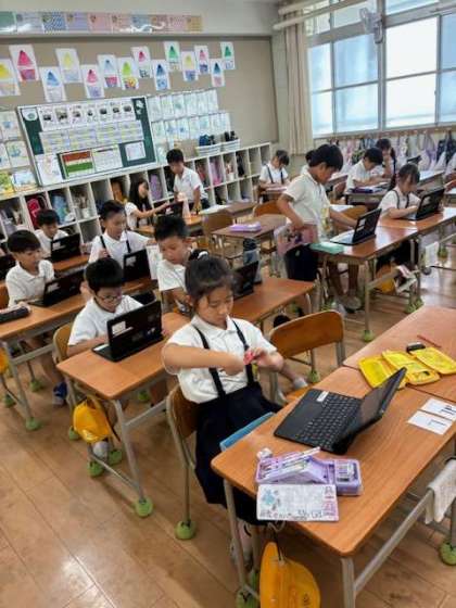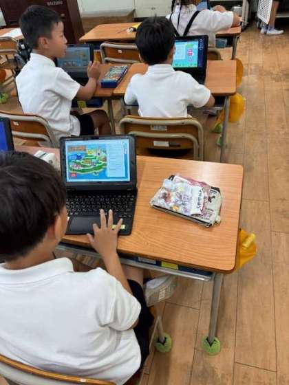 端末のソフトを使って漢字の復習をしていました。自分のペースで発展的にどんどん学習できるのが良いところです。