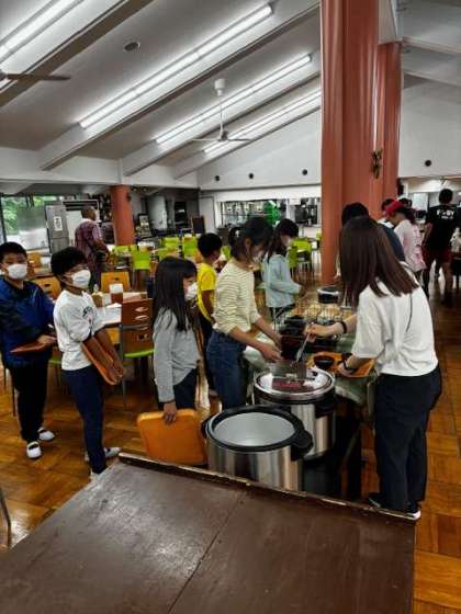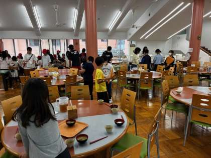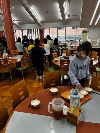 食事係が先に食堂に入ってご飯と味噌汁の配膳をします。